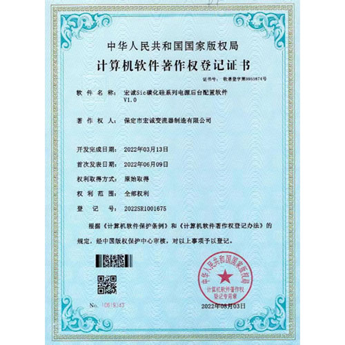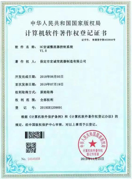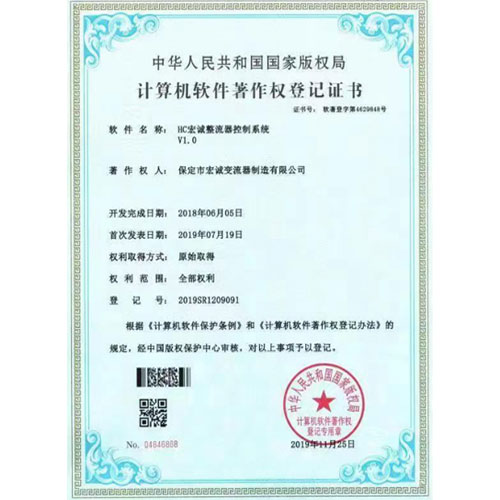 計(jì)算機(jī)軟件著作權(quán)登記證書(shū)--HC宏誠(chéng)整流器控制系統(tǒng)V1.0