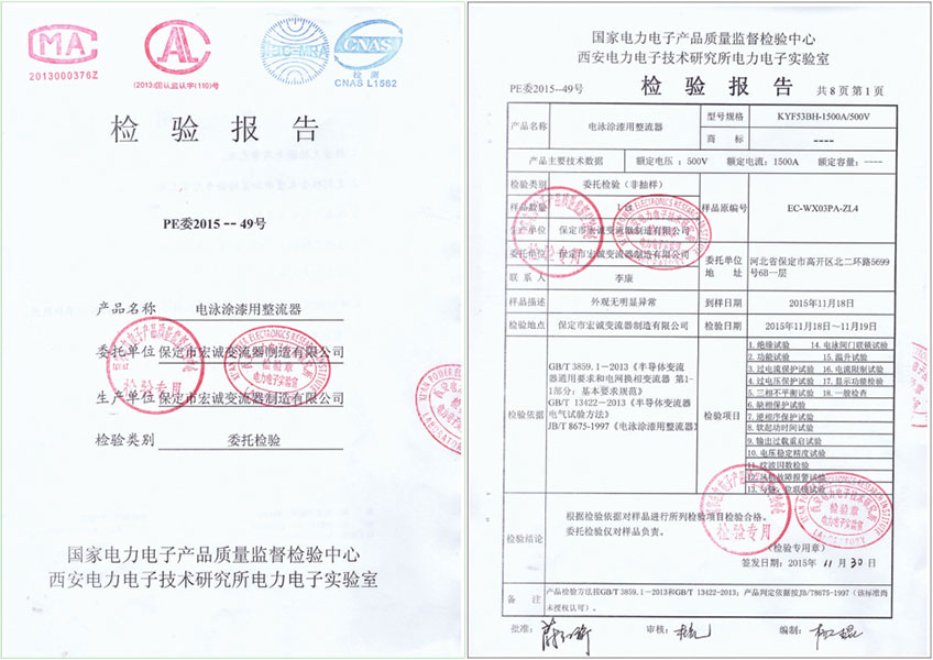 通過(guò)第三方國(guó)家電力電子技術(shù)中心對(duì)設(shè)備的全方面檢測(cè),滿足JB/T8675所有技術(shù)性能要求。