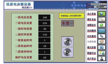 雙系統(tǒng)控制器提供整流變壓器保護、12 脈波整流橋相控觸發(fā)、人機操作、網(wǎng)絡通訊。同時溫度檢測元件監(jiān)控著變壓器、電抗器、晶閘管等功率器件,超過溫度設定值,設備報警動作,同時將故障上傳 PLC 并在觸摸屏上顯示。